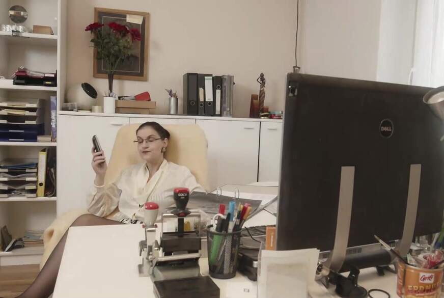 Im Büro bin ich echt ständig geil und es macht mich umso mehr an, wenn ich am Telefon noch eine männliche Stimme habe! Ich musste es mir einfach wieder besorgen! Kommende Woche habe ich auch noch einen da zum Probearbeiten! Mal sehen ob ich von Ihm die F****r lassen kann? Oder was denkst du? Soll ich mit meinen weiblichen Reizen spielen und Ihn verführen? Erzähl es mir! Jetzt erstmal Hose auf und deinen s*****z raus und schön w*****n!