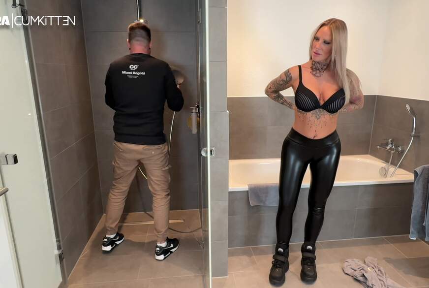 Ich habe mega Druck und will unbedingt f****n. Als ich im Baumarkt meinen netten Nachbarn treffe, bitte ich ihn um Hilfe bei der Duschköpfen. Ich will eine Regendusche und trotzdem einen Druckstrahl zum befriedigen haben. Er schaut mir die ganze Zeit auf meinen prallen Leggings Bubble B**t und kann sich kaum konzentrieren, aber er empfiehlt mir einen guten, der alles kann. Während er mir die Brause in der Dusche montiert, ziehe ich mich schon aus, denn ich will mich mit einem geilen F**k bei ihm bedanken. Er ist total überrumpelt als ich halb nackt nur in Leggings und Buffis vor ihm stehe. Er hat sofort einen S*****r und ich w***e ihn geil ab bevor ich mir die Leggings vom A***h ziehe und er mich d***y k*****n kann. Er nimmt mein ungewö...